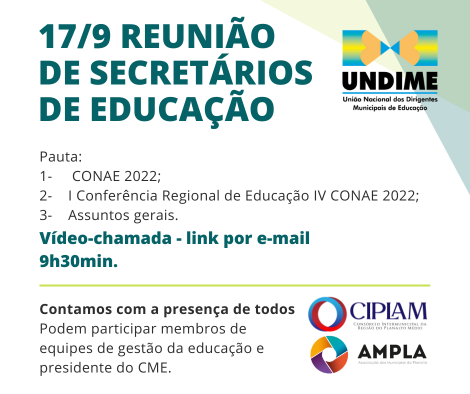 Convocação aos Secretários (as) Municipais de Educação e aos Presidentes dos Conselhos Municipais de Educação - CME, para reunião da Educação do CIPLAM e do CONSEME/UNDIME/AMPLA.