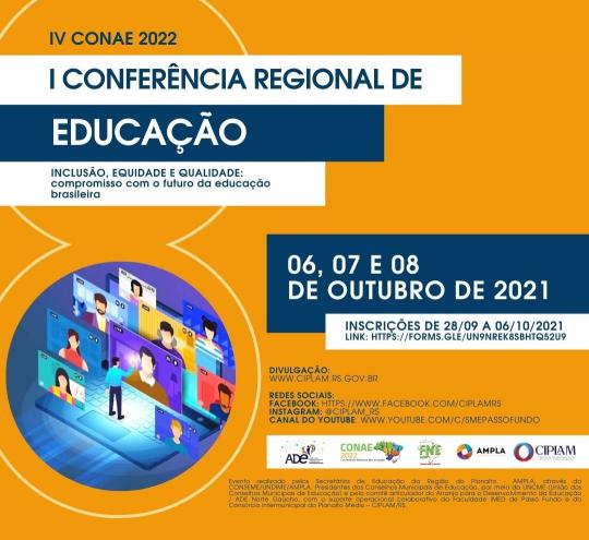 Inscrições abertas para a I CONFERÊNCIA REGIONAL DE EDUCAÇÃO DA IV CONAE 2022 do Planalto Médio Gaúcho