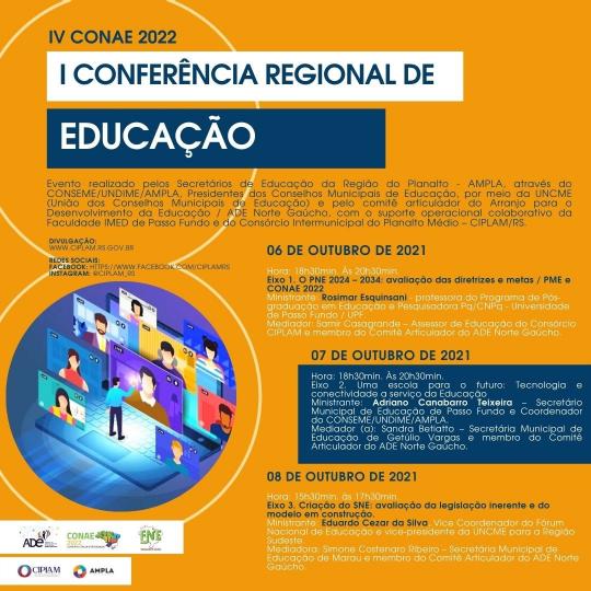 Programação da I CONFERÊNCIA REGIONAL DE EDUCAÇÃO DA IV CONAE 2022 do Planalto Médio Gaúcho